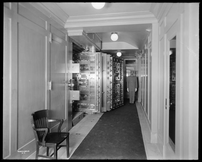 West Broadway and Chambers Street. Fidelity Trust Co., view towards safe deposit.