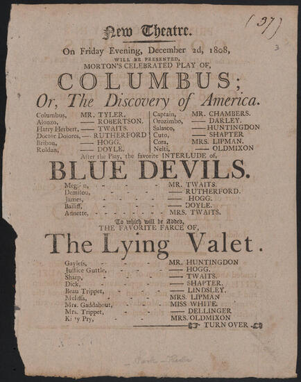 Third night of Mr. Wood's engagement. On Monday evening, September 17, 1810, will be presented the comedy, "The Wheel of Fortune"