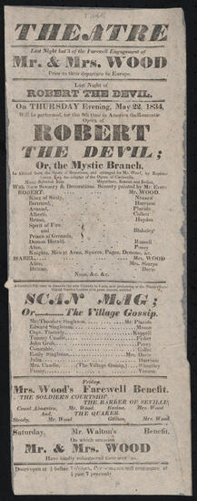 Third and last night but seven of the engagement of Mr. & Mrs. Wood and Mr. Brough, "La Sonnambula", Thursday evening, May 19, 1836