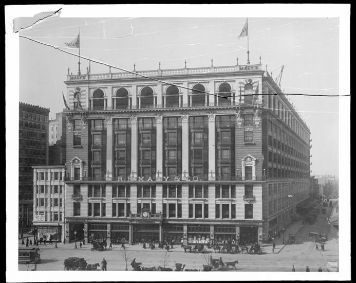 Broadway between 34th and 35th Street. R.H. Macy Store, from West 35th Street.