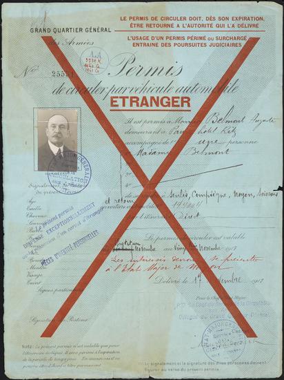 [August Belmont, Jr. driving a carriage with his wife Eleanor Robson Belmont, and their son August Belmont III and his wife Alice W. de Goicouria, through the gates of their Newport home "By-the-sea".