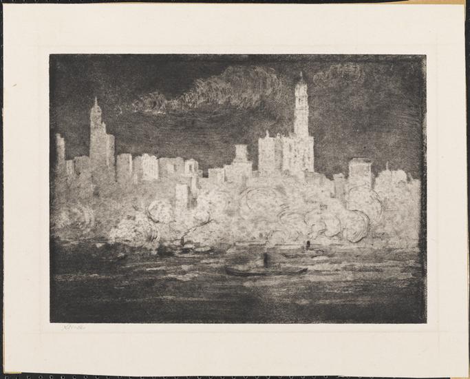 [New York Skyline and Brooklyn Bridge from Brooklyn.]