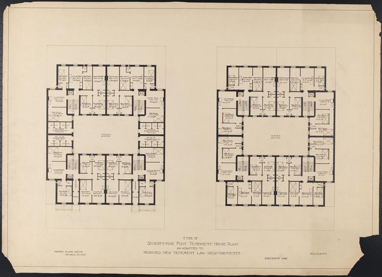 Type of Fifty Foot Corner Tenement House Plan As Adapted To Proposed New Tenement Law Requirements