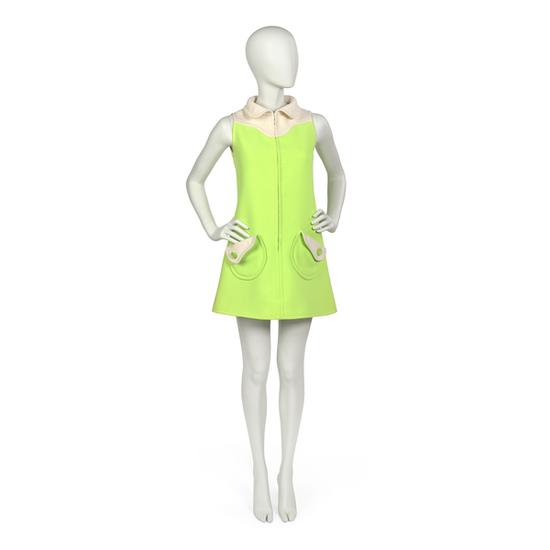 Dress in pale green worsted double gabardine