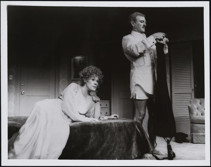 [Brian Bedford as Elyot Chase and Tammy Grimes as Amanda Prynne in "Private Lives".]