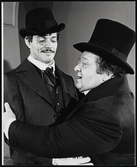 [Donald Pleasence as Bitos (Robespierre) and C. K. Alexander as Vulturne (Mirabeau) in "Poor Bitos".]