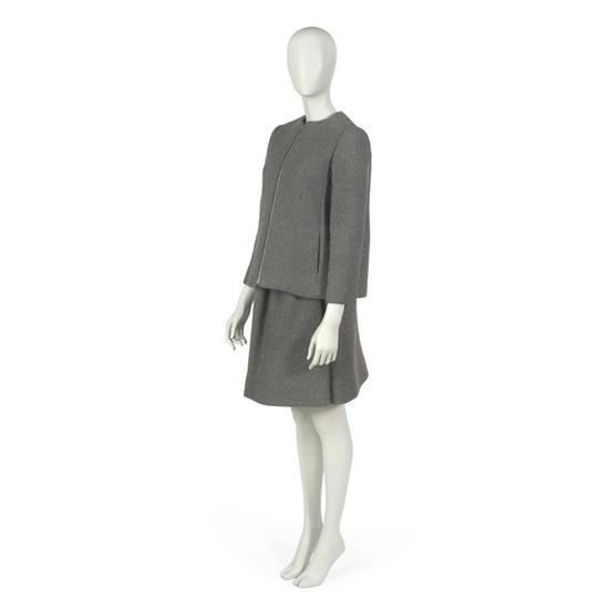 Suit in charcoal grey wool flannel, comprising jacket and skirt