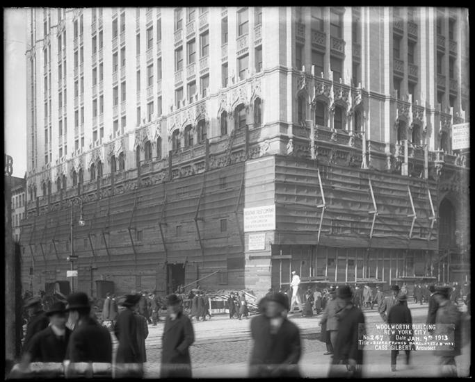 Woolworth Building, storefronts [on] Park Place and Broadway.