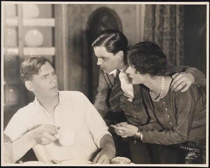 [An unidentified actor as Thomas Potter and an unidentified actor in the role of Henry Potter in "The Man Who Came Back".]