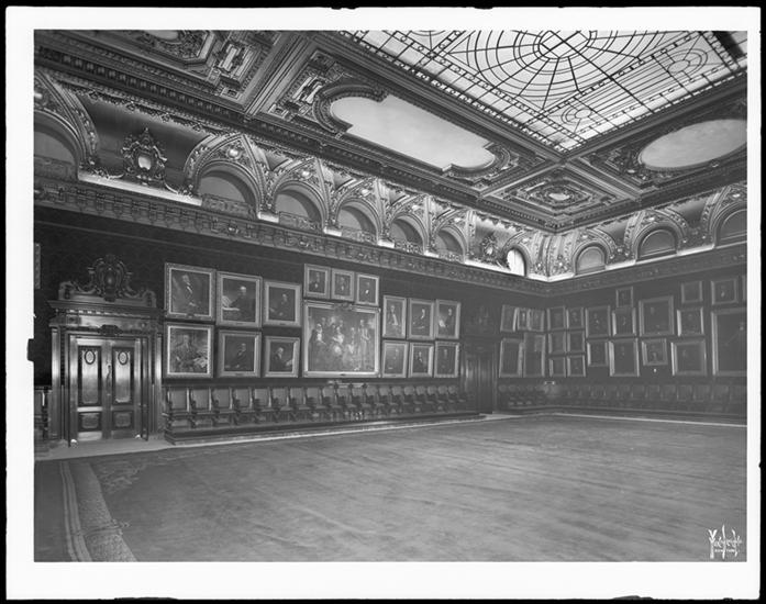 65 Liberty Street. New York Chamber of Commerce, side of Assembly Hall showing pictures.