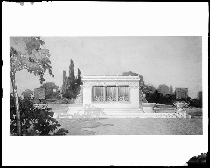 Watercolor, front elevation of Crawford Mausoleum.