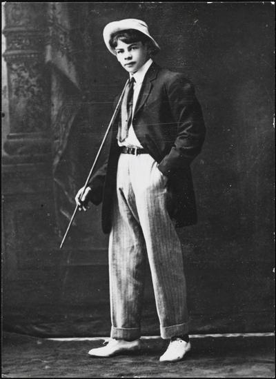 [Paul Muni with his wife, Bella Finkle, and dog.]