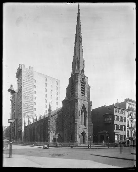 10th Street and Broadway. Grace Church, looking N.W. to tower and spire.