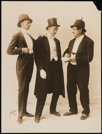 [Vernon Castle as Lord Bicester, Joseph Cawthorn as Schlump and Julia Sanderson as Dora Dale in "The Sunshine Girl".]