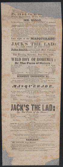"William Tell; or, The Hero of Switzerland", "The Robber's Wife", "Tom and Jerry; or, Life in London" and "Paddy Miles' Boy", Saturday evening, June 20