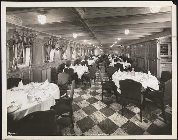 Furness Withy Co., S.S. "Fort Victoria" Pier 95 North River, Dining Salon First Class.