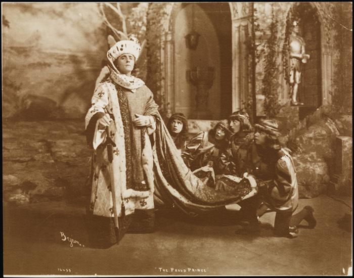 A scene from Justin Huntly McCarthy's play "The Proud Prince" which was presented at the Herald Square Theatre in 1903 and featured E.H. Sothern in the title role of Robert, King of Sicily.