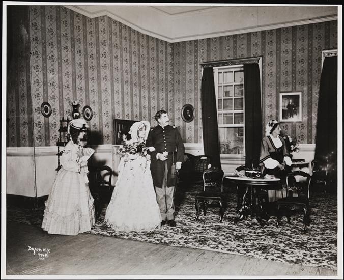 A scene from the romantic drama by Cylde Fitch, "Barbara Frietchie," produced by Charles Frohman at the Criterion Theatre, New York, in 1899, featuring Julia Marlowe as Barbara Frietchie.