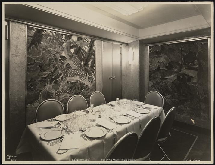 French Line, S.S. "Normandie", Cabin Class, Interior, Private Dining Room, Boatdeck.