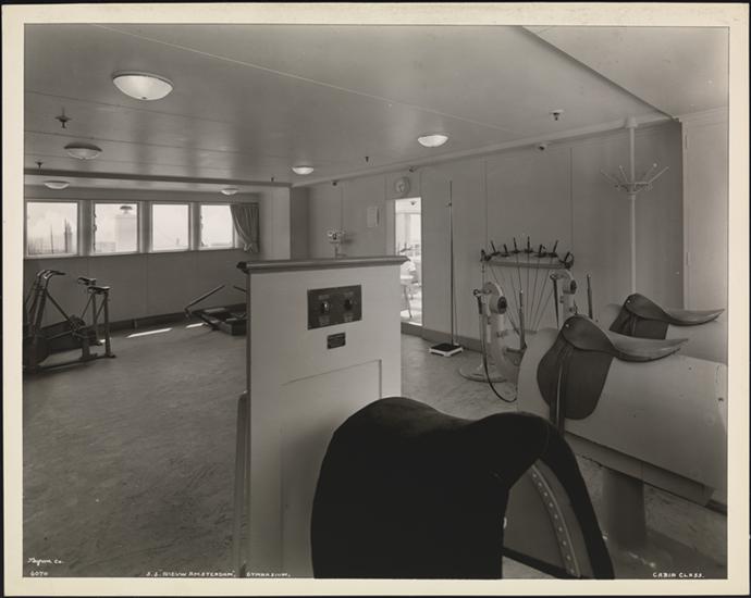 S.S. "Statendam", 5th St., Hoboken N.J., Cabin Class, Interior, Gymnasium.