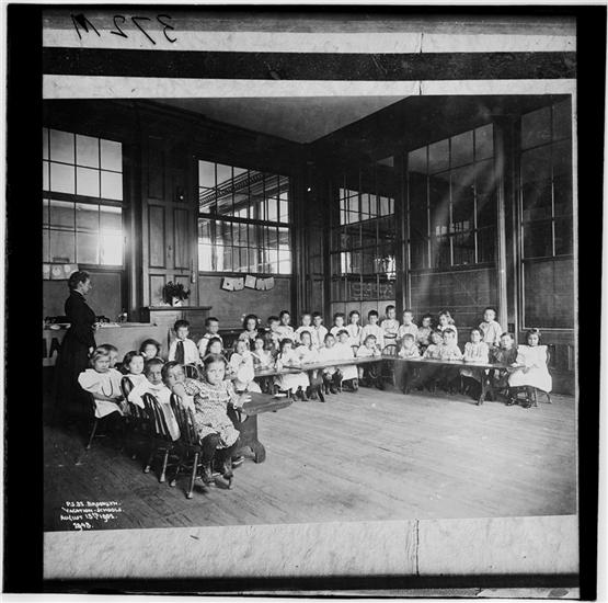 East Side Public Schools 2. Class without desks in the Essex Market School.