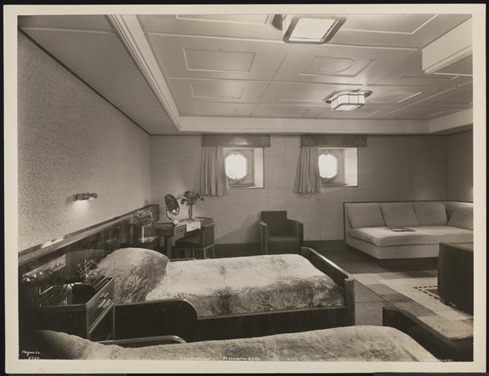 French Line, S.S. "Normandie", Cabin Class, Interior, Stateroom #109.