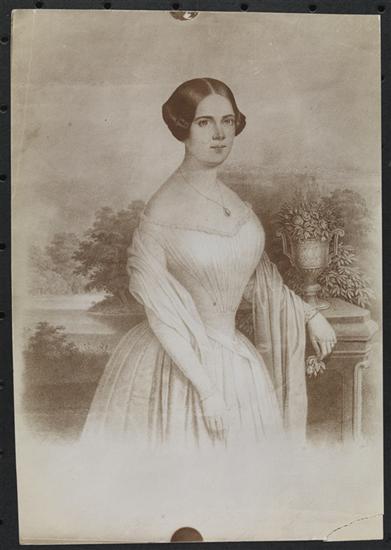 Photograph of a portrait engraving of a woman, Grofsherzogin Auguste, Grandmother of the crown princess.
