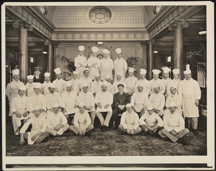 Chef Robert & Cooks in Dining Salon. S.S. "France" Pier 57 North River.