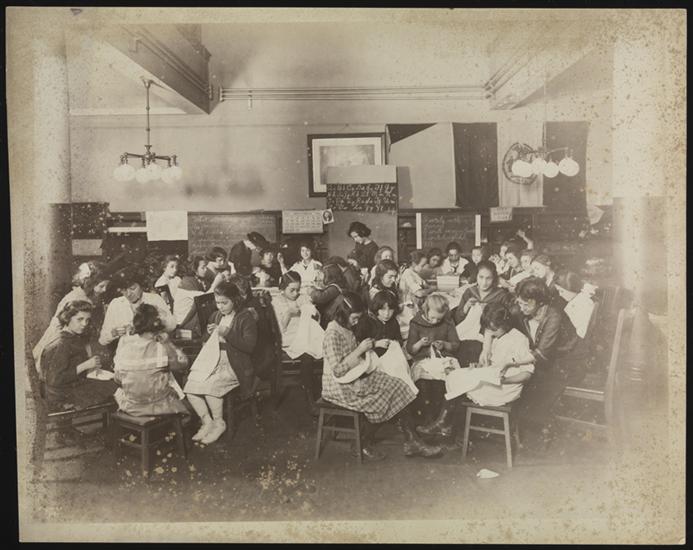 Interior, 157 E. 94th St., Childrens' Sewing Class.