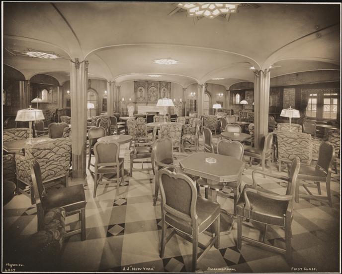 United American Lines, S.S. "Cleveland", Interior, Third Class, Smoking Room.