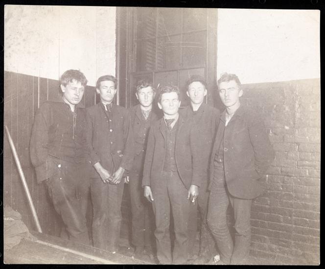 Police Station Lodging Room 4. Oak Street Station, Six boys picked out of the draft in the men's lodging room.
