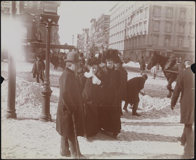 Snow Scenes, Blizzard, Street Scenes in New York City.