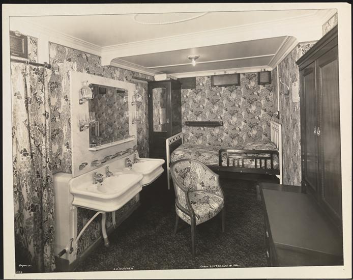 French Line, S.S. "Suffren" Pier 57 North River, Third Class, Interior, 2 Berths Stateroom #638.