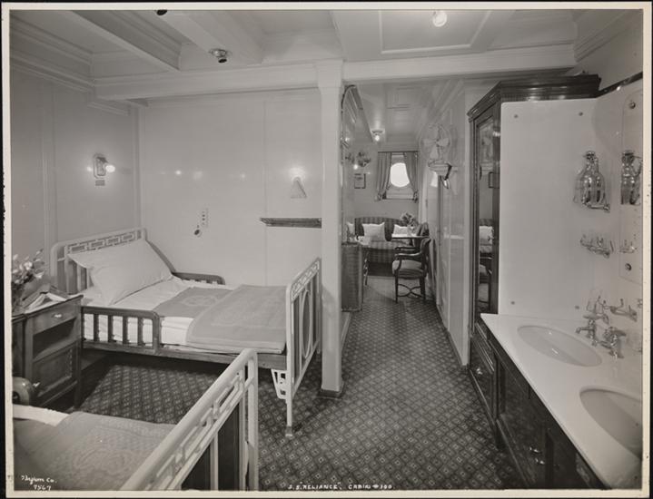 United American Lines, S.S. "Reliance", At Pier 86 N.R., Interior, First Class, Suite C. 93 Bedroom.