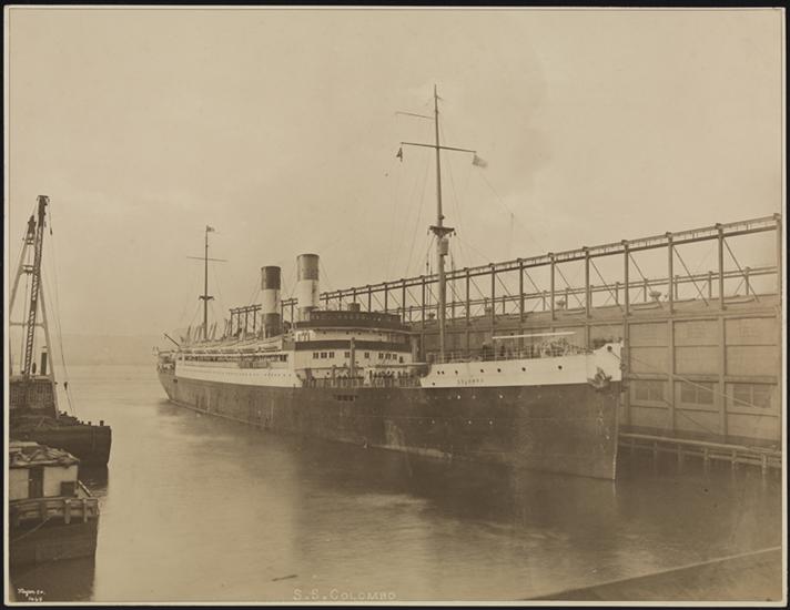 Italia-America Line, S.S. "Colombo", Exterior, Boat Entering Slip at Pier 77 St. North River.