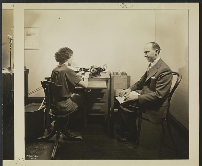 New York Association for the Blind, Interior, General Office, Blind Girl Taking Dictation from Blind Man.