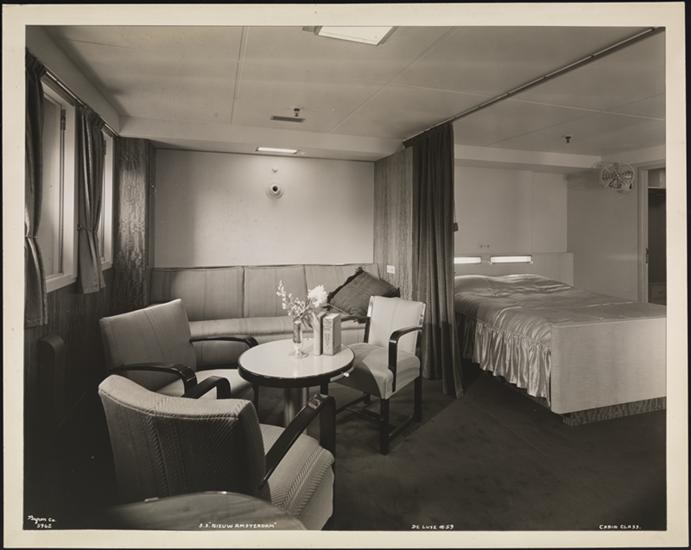 S.S. "Nieuw Amsterdam", Cabin Class, Interior, Cabin de Luxe #59, from Sitting Room Section.