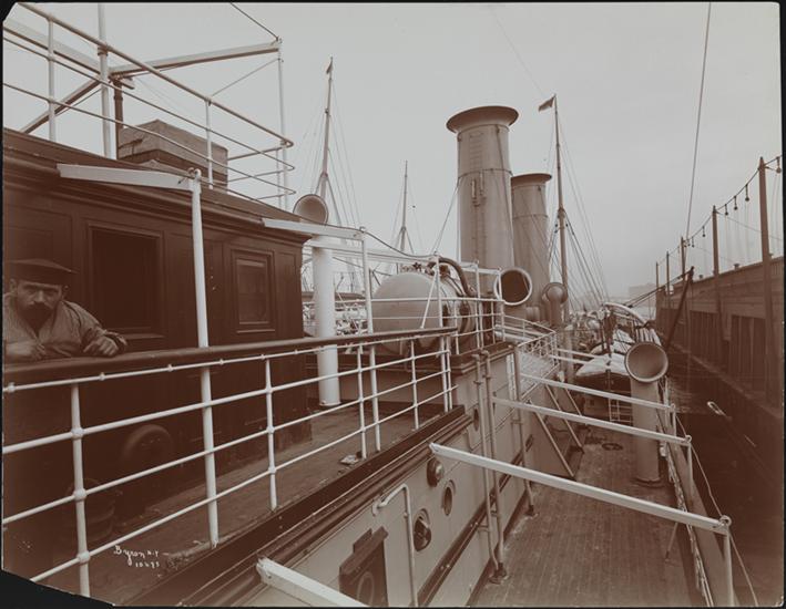 The bridge and boat deck aboard the S.S. "Prinzessin Victoria Luise" at dock