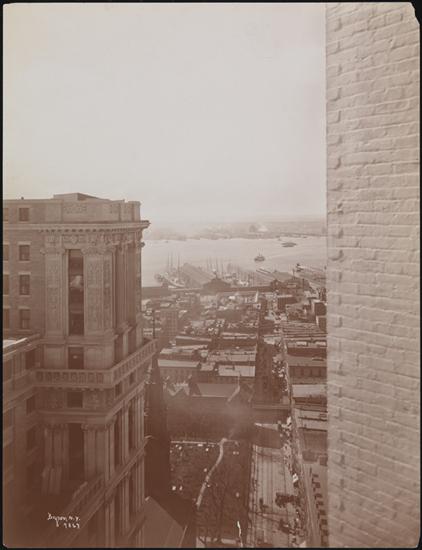 "Vesey St. looking west from Broadway" pencilled on verso.