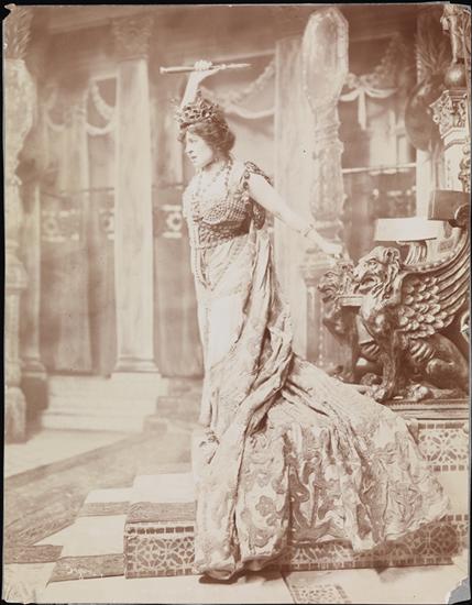 Mrs. Leslie Carter as Adrea in "Adrea" by David Belasco and John Luther Long, presented at the Belasco Theatre, Broadway and 42nd Street, New York, circa 1905.