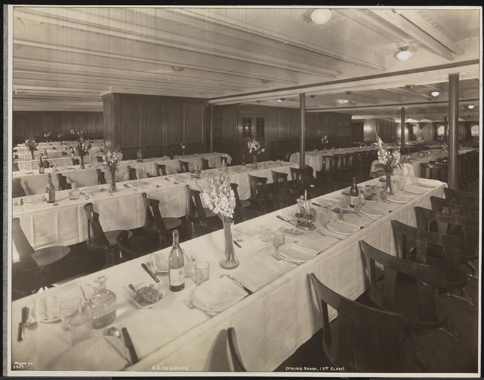 Swedish American Line, S.S. "Drottningholm", Third Class, Interior, Dining Room.