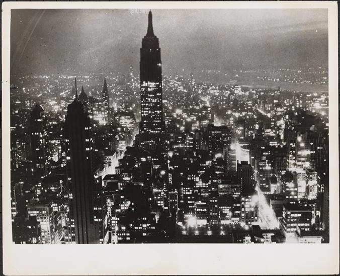 [The Empire State Building and Chrysler Building from St. Gabriel's Park.]