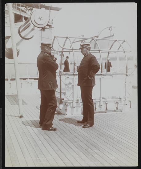 "Rear Admiral Robley D. Evans, Capt. Pillsbury" on neg.