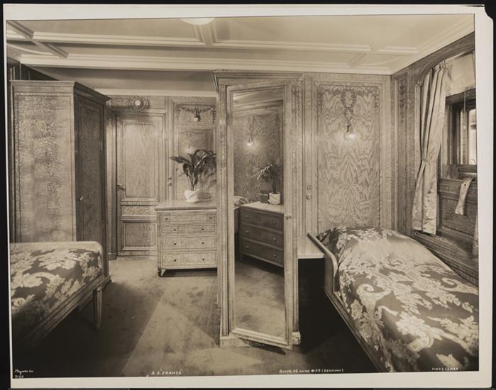French Line, S.S. "France", Interior, Suite #2 Bedroom.