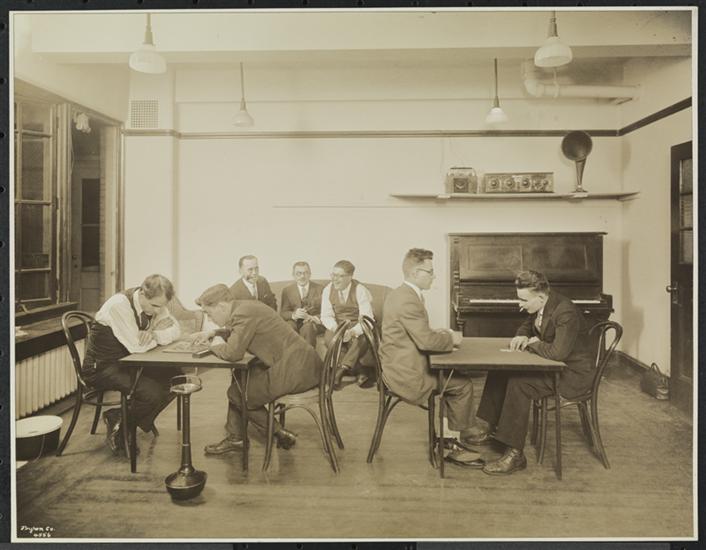 N. Y. Asso. for the Blind, Interior, Men Playing Pool.