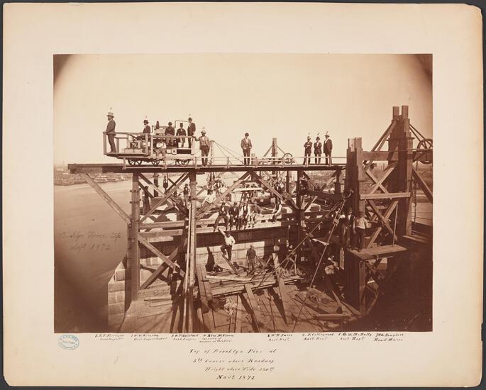 Work in Progress on the Brooklyn Pier of the East River Bridge