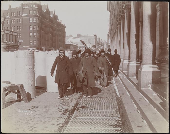 Snow Scenes, Blizzard, Street Scenes in New York City.