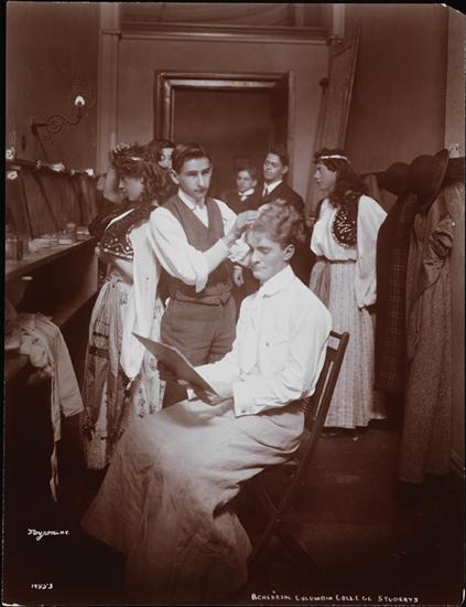 Description Rehearsal for an unidentified Columbia College amateur theatrical presented in 1904.