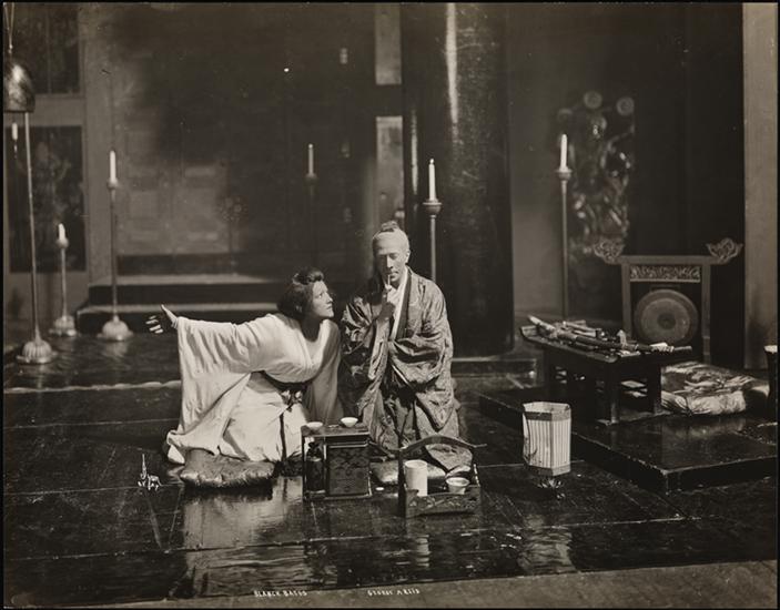 Scene from "Darling of the Gods" featuring Blanche Bates, George Arliss and Robert Haines.