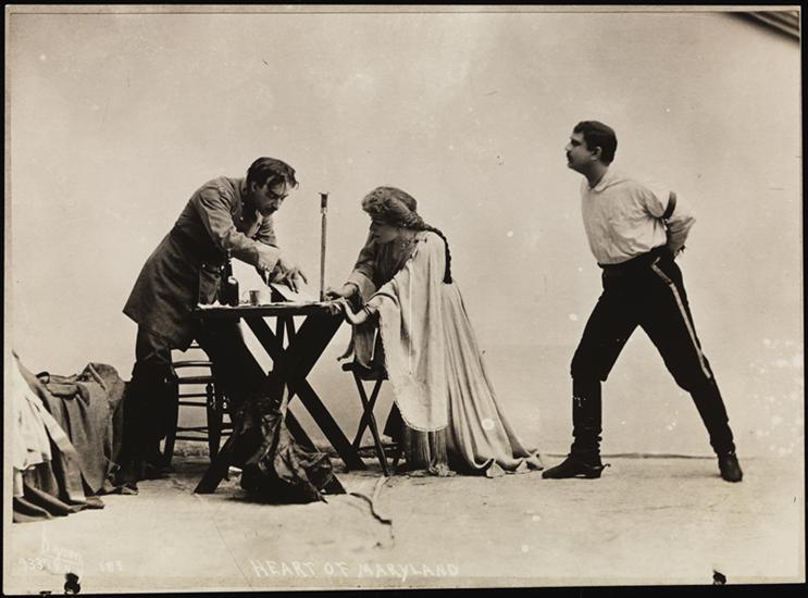 A scene from David Belasco's "The Heart of Maryland," featuring Maurice Barrymore as Col. Alan Kendrick and Mrs. Leslie Carter as Maryland Calvert.